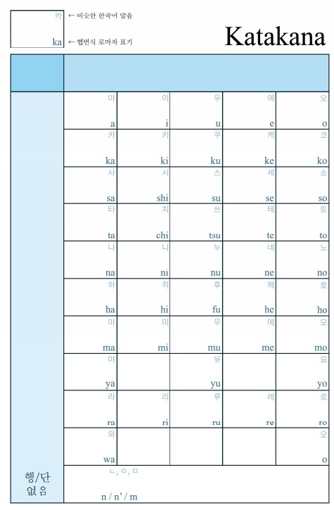 일본어를 제대로 배우고 싶다면 반드시 익혀야 하는 것이 바로 가타카나 표입니다.